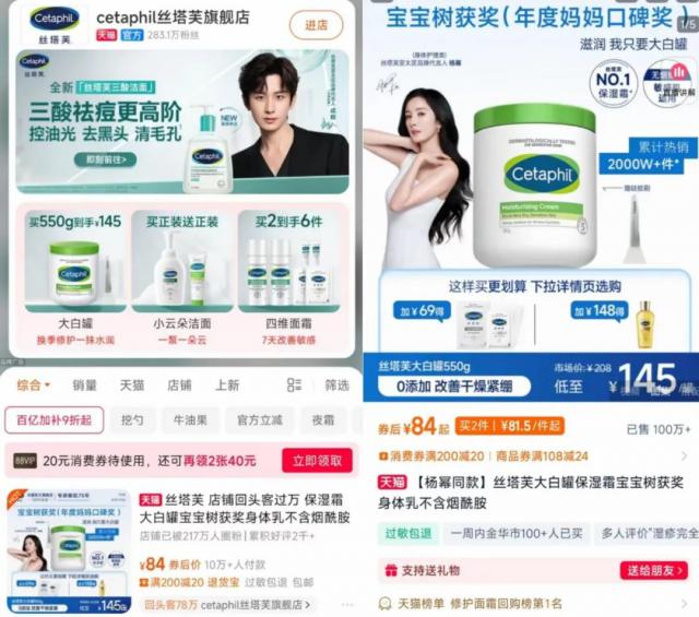 以丝塔芙 Cetaphil 在中国市场的表现为例,目前,在天猫丝塔芙旗舰店中,其明星大单品丝塔芙大白罐已售 100 万 +,上榜天猫修护面霜回购榜第一名。另外,据公开数据显示,今年 1 月,丝塔芙旗舰店位列天猫平台乳液 / 面霜品牌交易总量 TOP4;2 月,同样挤进天猫与淘宝平台美容护肤板块销售 TOP5 之列。