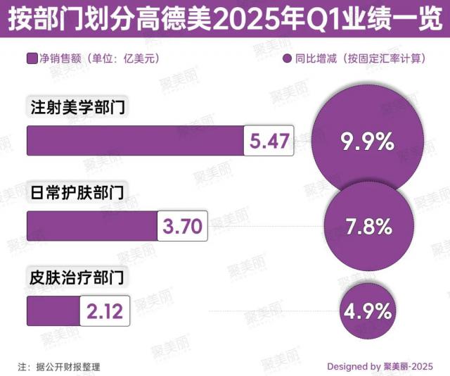 具体来看,注射美学部门今年 Q1 净销售额为 5.47 亿美元 ( 约合人民币 40 亿元 ) ,是高德美净销售额规模最高的部门,按固定汇率计算,同比增长 9.9%。